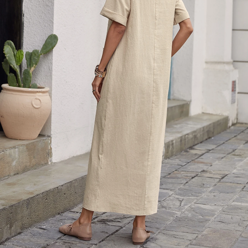 WYGODA I ODDYCHALNOŚĆ - Wykonana z wysokiej jakości mieszanki bawełny i lnu, ta sukienka gwarantuje wyjątkowo miękki, przyjazny dla skóry komfort i doskonałą oddychalność. Naturalna faktura materiału zapewnia swobodny przepływ powietrza, zapewniając chłód latem i wygodę przez cały dzień - bez poświęcania struktury lub stylu.