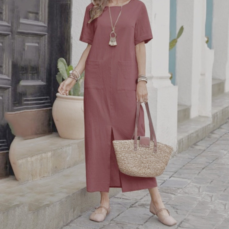 Opakowanie zawiera 1 × bawełnianą lnianą luźną sukienkę z okrągłym dekoltem