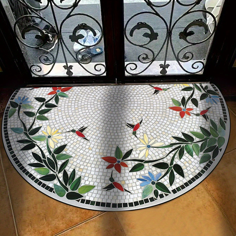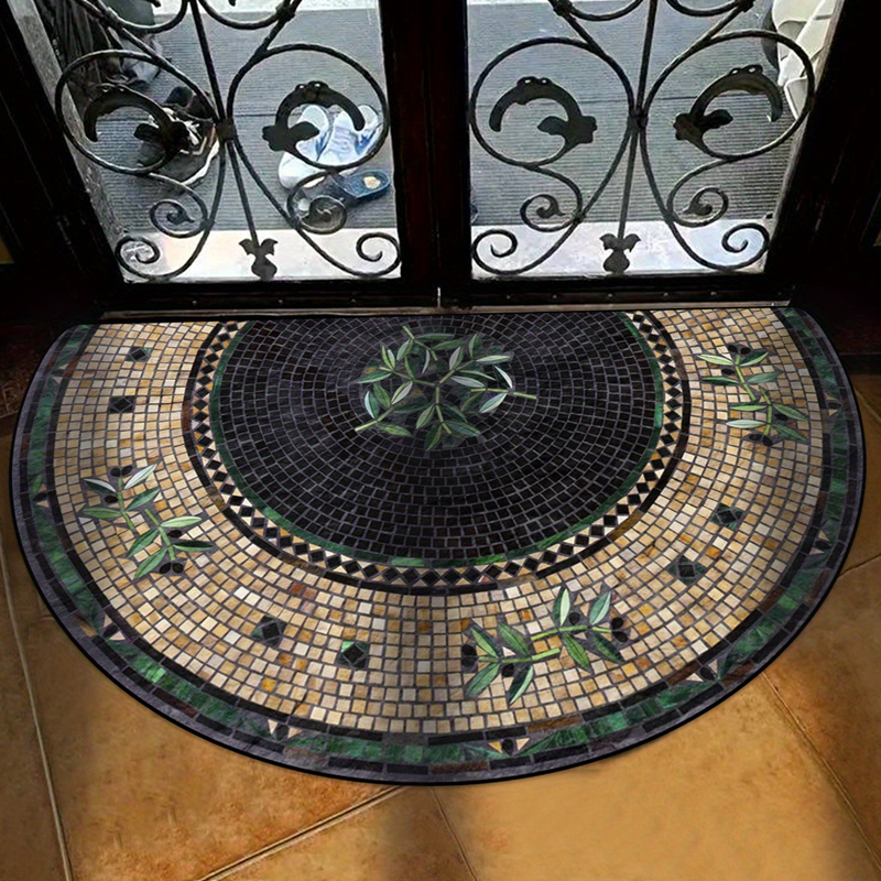 Rafined Patchwork Design: Ten dywan ma unikalne wzory, mieszając geometryczne kształty i detale artystyczne. Każdy kawałek jest starannie zaprojektowany z półkolistymi kształtami i małymi płytkami ułożonymi w złożonym wzorze, tworząc uderzający punkt centralny, który poprawia dekorację każdego pomieszczenia.