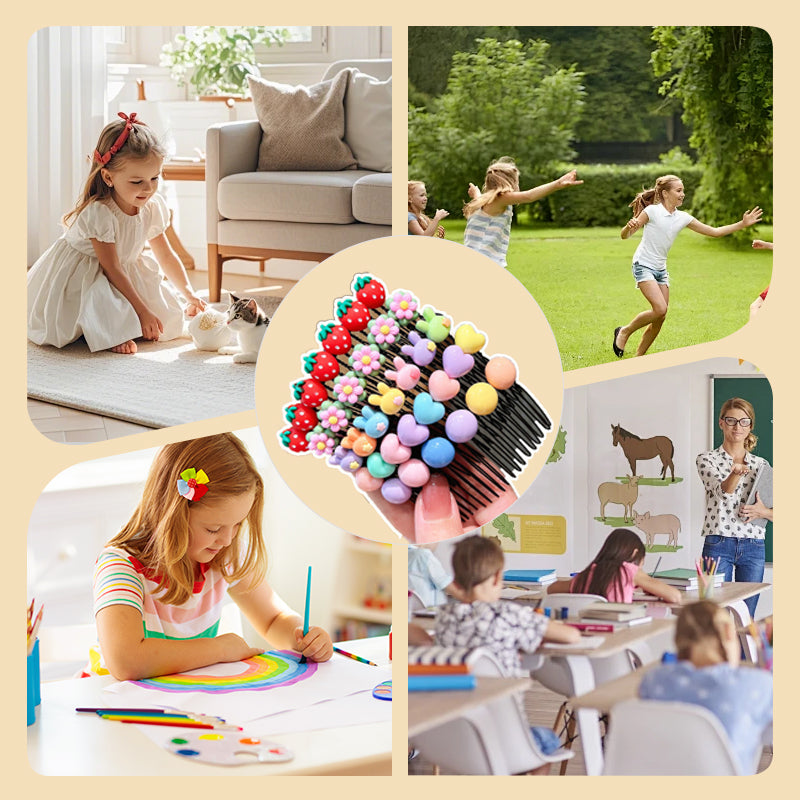 Śliczny kreskówkowy styl - Zaprojektowana z zabawnymi kreskówkowymi wzorami lub kształtami zwierząt, takimi jak truskawki i króliki, ta spinka do włosów jest kolorowa i urocza - wygląda bardziej jak zabawka niż akcesorium do włosów, co zachęca dzieci do noszenia jej z zapałem.