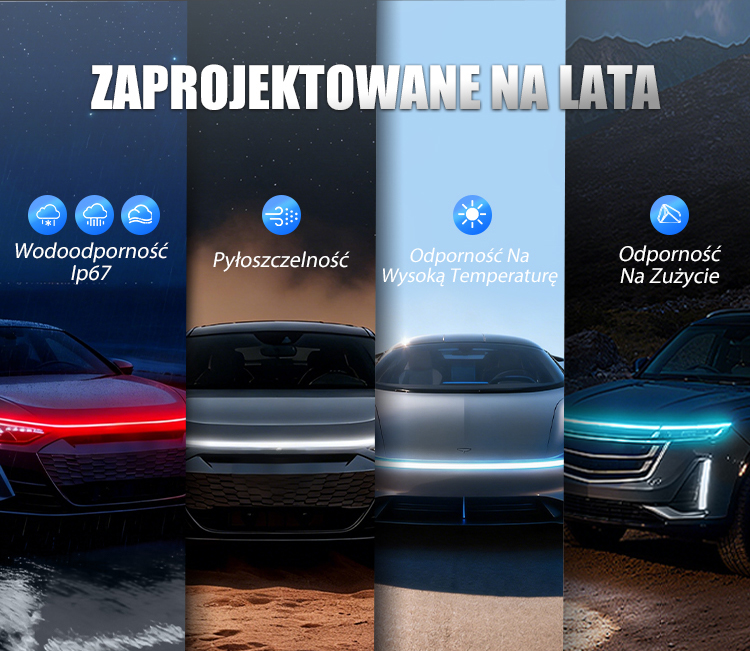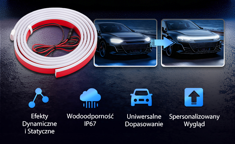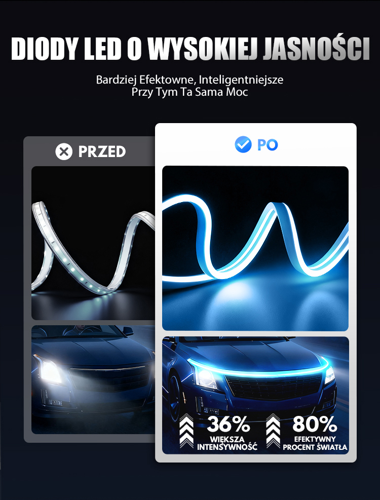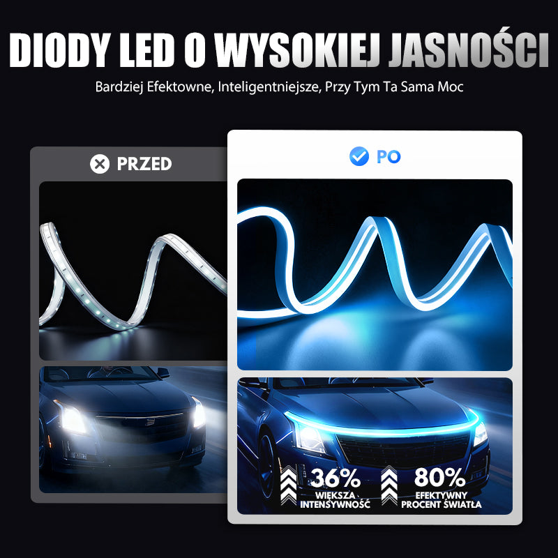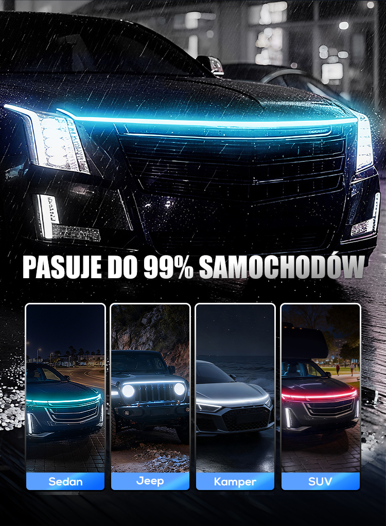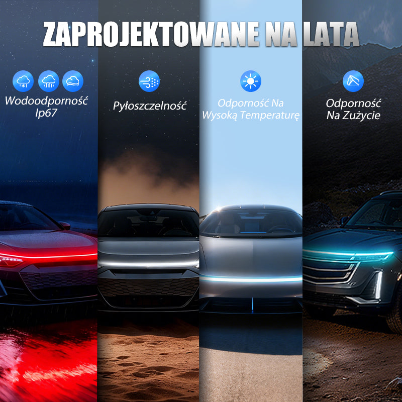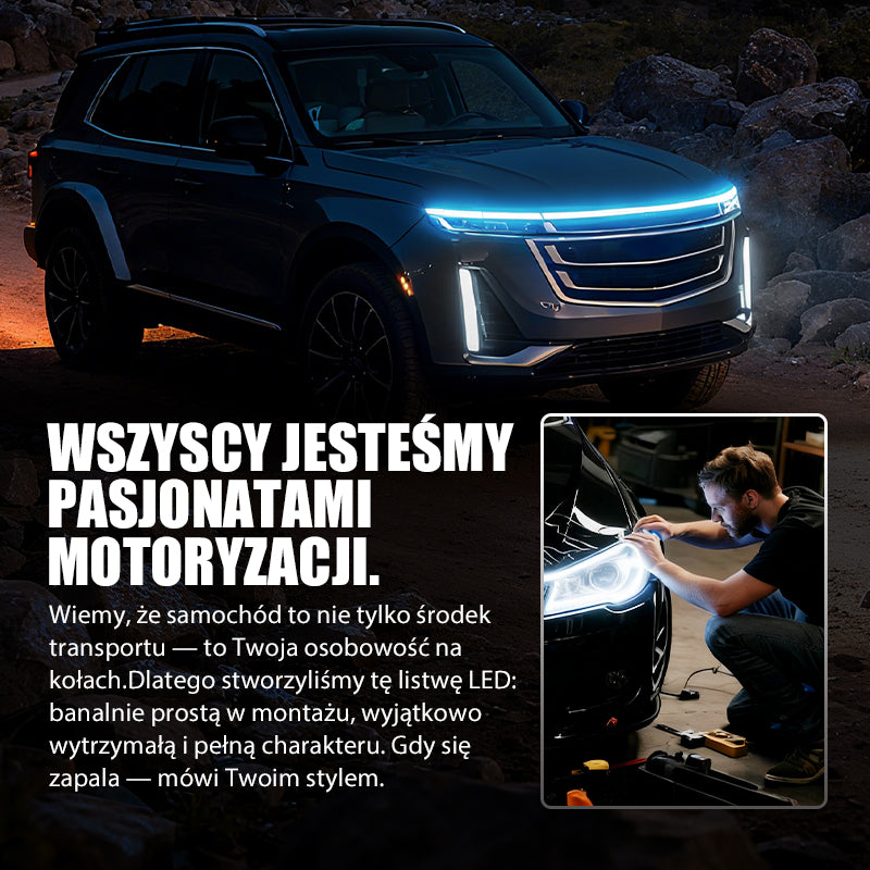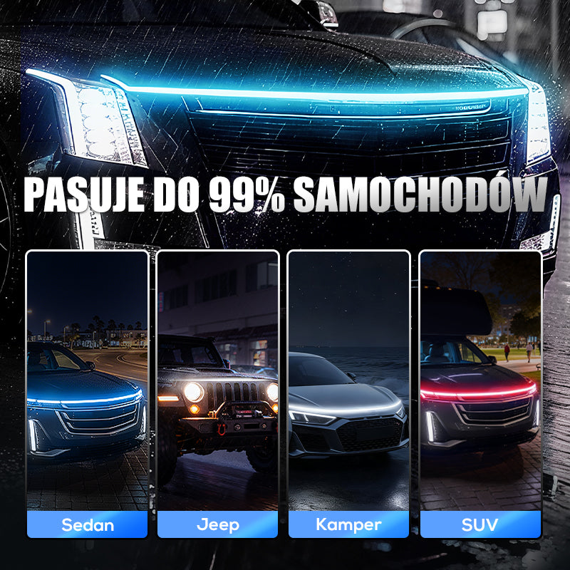 LED światła dzienne i dekoracyjne do samochodu – podświetlenie maski i grillu z funkcją skanowania przy uruchamianiu silnika