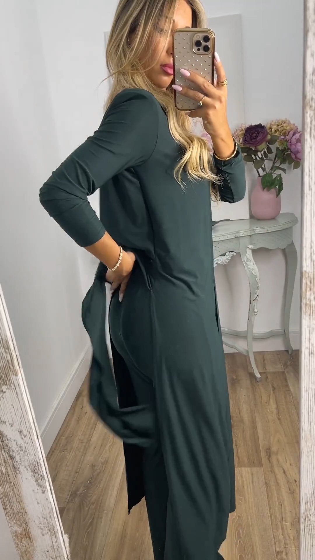 🎁Elegancki 2-częściowy garnitur z długim topem i dopasowanymi spodniami✨