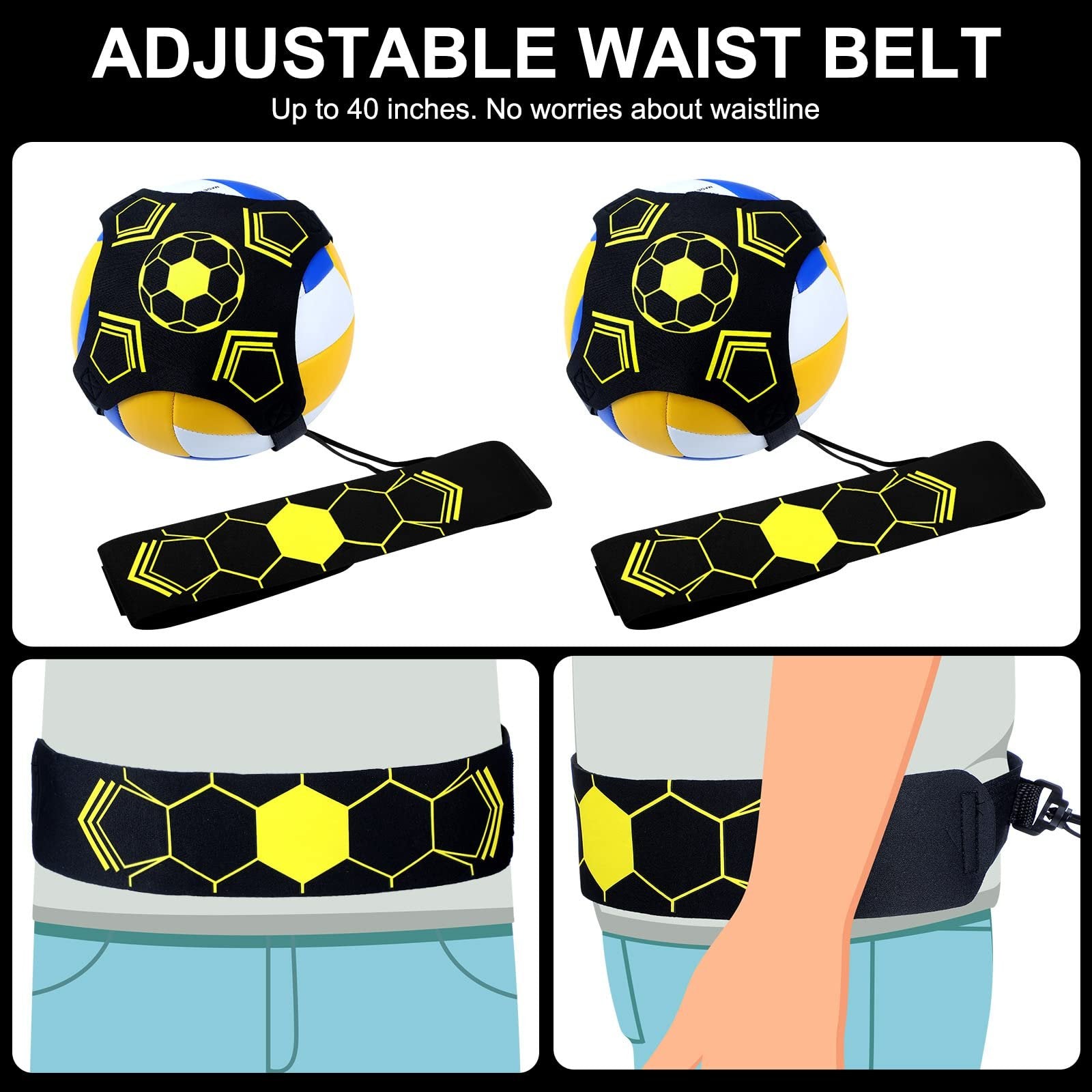 - Pasek z regulowaną długością statyczną około 2 m, rozciągliwy od 2 do 12 m, elastyczna taśma o szerokości 0,8 cm + magiczna kulka o szerokości 2,5 cm i wymiarach 26 x 26 cm, może owinąć piłki nr 3 / nr 4 / nr 5!!