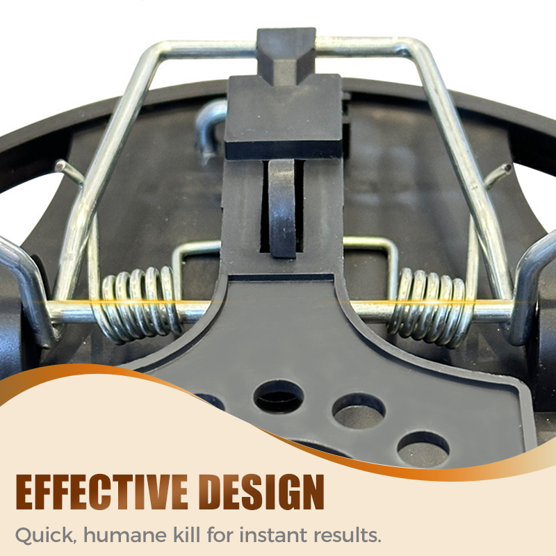 BARDZO SKUTECZNY DESIGN – Wyposażona w mocny mechanizm zatrzaskowy, który zapewnia szybkie i humanitarne uśmiercenie. Zaprojektowana tak, aby natychmiast eliminować myszy, zmniejszając ich cierpienie i utrzymując Twój dom wolny od bałaganu, zniszczeń i zapachów spowodowanych przez gryzonie.