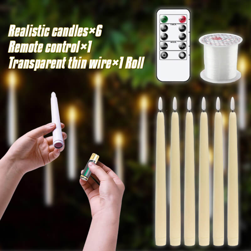 Dekoracyjne świece bezpłomieniowe z pilotem (baterie nie są dołączone) Światło × 6 Pilot zdalnego sterowania × 1 Przezroczysty przewód × 1 |