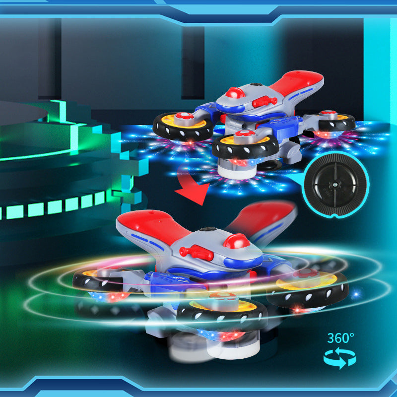 Elastyczność i dreszczyk emocji - muzyczna zabawka motocyklowa jest wyposażona w elementy żyroskopowe i zaawansowany system sterowania, który pozwala muzycznym zabawkom samochodowym dla maluchów automatycznie obracać się o 360°, gdy koła obracają się w górę. Ta zabawka sensoryczna to ekscytujące, pełne zabawy doświadczenie, które pobudza wyobraźnię i kreatywność dzieci.