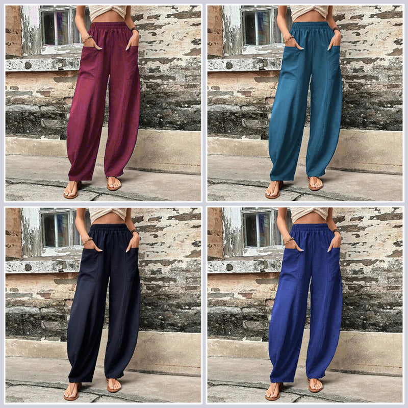 Wygodne spodnie damskie o luźnym kroju. Miękki i lekki materiał. Do noszenia na jogę, piżamę rekreacyjną, plażę, gorące letnie podróże, macierzyństwo, festiwal, taniec i nie tylko.