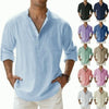 💝Męska bawełniana lniana koszula z długim rękawem😎
