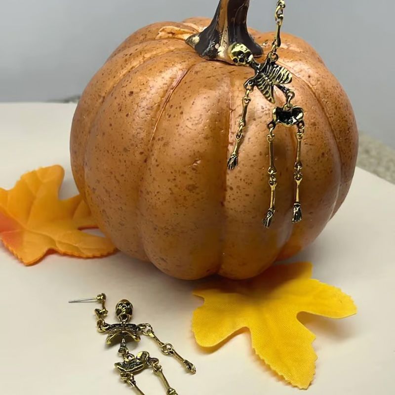 Dodaj odrobinę mistycznego uroku do swojego wyglądu dzięki naszym kolczykom w kształcie szkieletu.