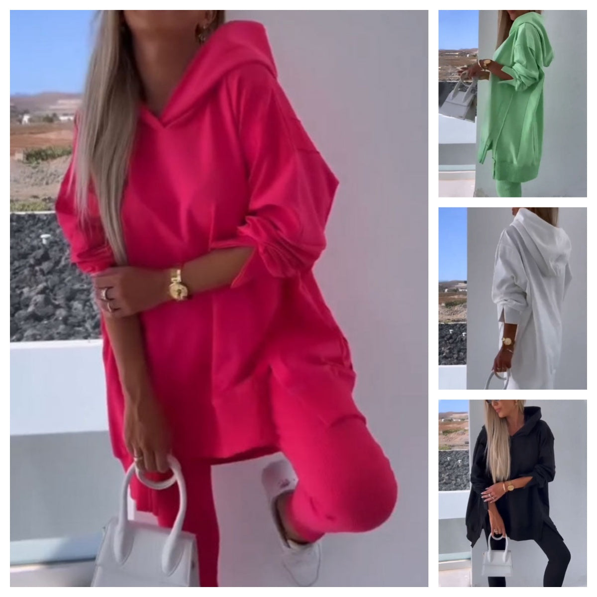 STYLOWY DESIGN: Ten dwuczęściowy zestaw łączy nowoczesną estetykę z lekkim stylem. Luźna bluza z kapturem pięknie łączy się z dopasowanymi legginsami do biegania, tworząc elegancką sylwetkę. Dostępny w modnych kolorach, pozwala wyrazić swoją wyjątkową osobowość, dzięki czemu jest wszechstronnym dodatkiem do garderoby na każdą okazję.