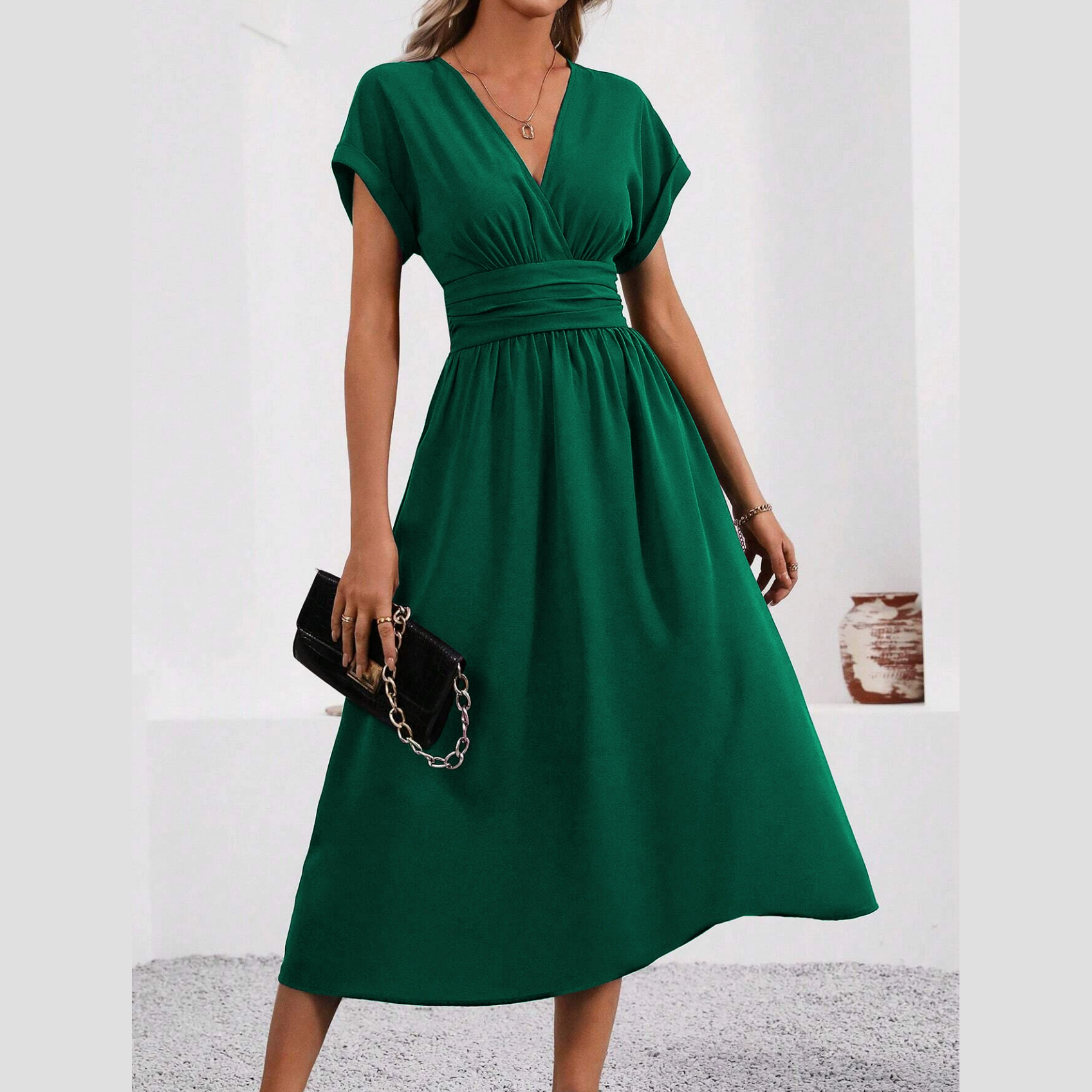 Elegancka sylwetka - Pochlebiaj swoje krzywe głęboką linią dekoltu i dopasowaną talią, która staje się delikatnym uściskiem. Minimalistyczny projekt wydłuża twoją ramę, obracając głowy na brunch, spotkania biurowe lub noce koktajlowe. Brak kieszeni? Po prostu czysta, bez rozproszenia elegancji.
