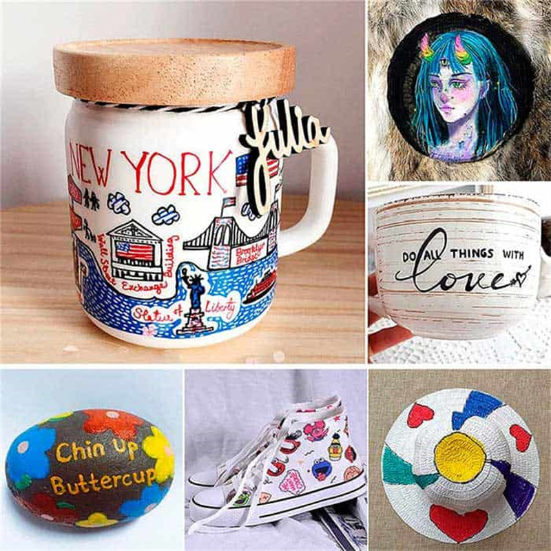 Zgodność z wieloma powierzchniami– Użyj tych wszechstronnych markerów na różnych powierzchniach, w tym płótnie, papier, tkanina, szkło, drewno, ceramika, tworzywa sztuczne i inne. Idealny do różnych zastosowań DIY i rzemieślniczych.
