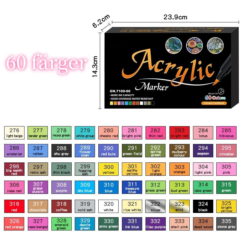 Pakiet zawiera: 12/24/36/48/60 * akrylowe długopisy farbowe