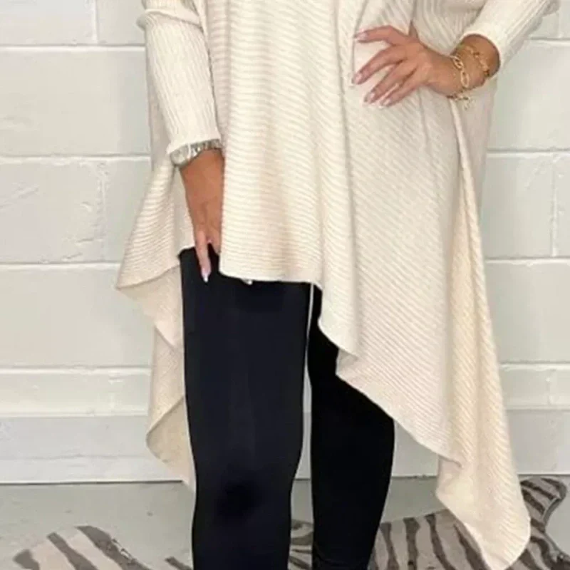 NIEREGULARNY HEŁM: Ten sweter z charakterystycznym nieregularnym obszyciem doda Twojemu strojowi nowoczesnego i artystycznego charakteru. Asymetryczny krój tworzy dynamiczną sylwetkę, która pięknie się układa i dodaje wyjątkowy element do garderoby.