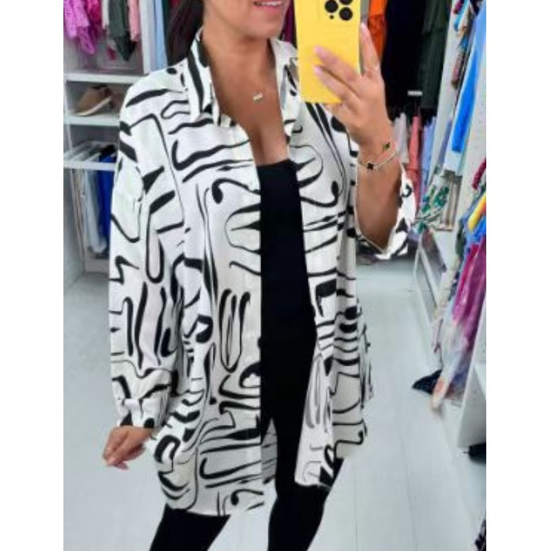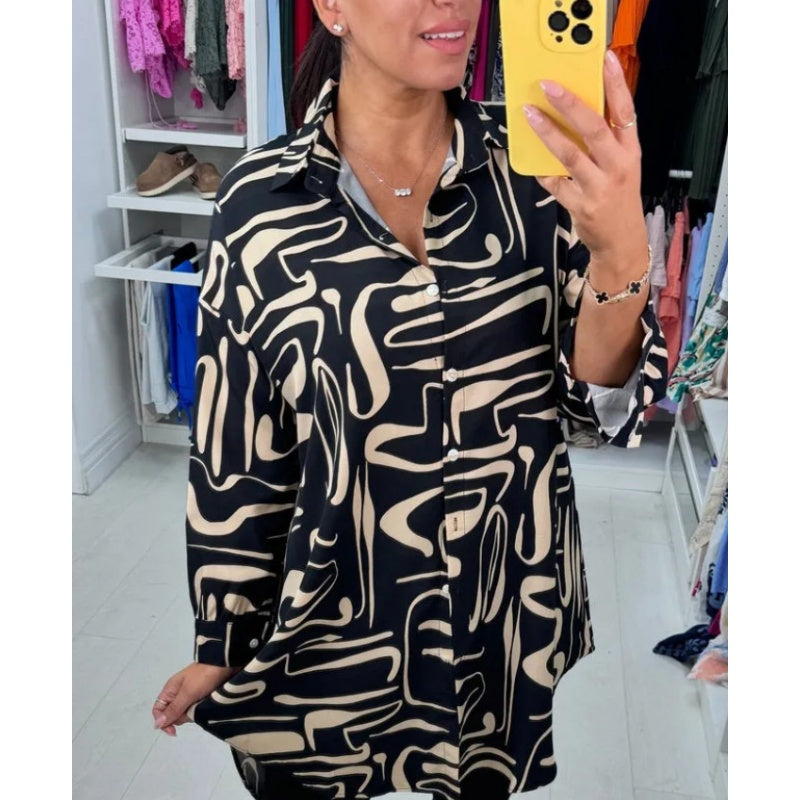 SZYKOWNY NADRUKOWANY WZÓR - Podkreśl swój swobodny styl dzięki naszej damskiej koszulce z długim rękawem z odważnym i przyciągającym wzrok nadrukiem. Misterny wzór dodaje odrobinę wyrafinowania do codziennych stylizacji.