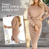 NATURALNA ELEGANCJA, IDEALNE POŁĄCZENIE - Ten pięknie skomponowany zestaw eliminuje konieczność zastanawiania się nad wyborem stroju. Luźna dzianinowa bluzka i dopasowana spódnica tworzą elegancki, spójny look, który z łatwością sprawdzi się zarówno podczas brunchu, jak i wieczornych wyjść.