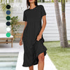🌼Lniana sukienka damska z okrągłym dekoltem i krótkim rękawem